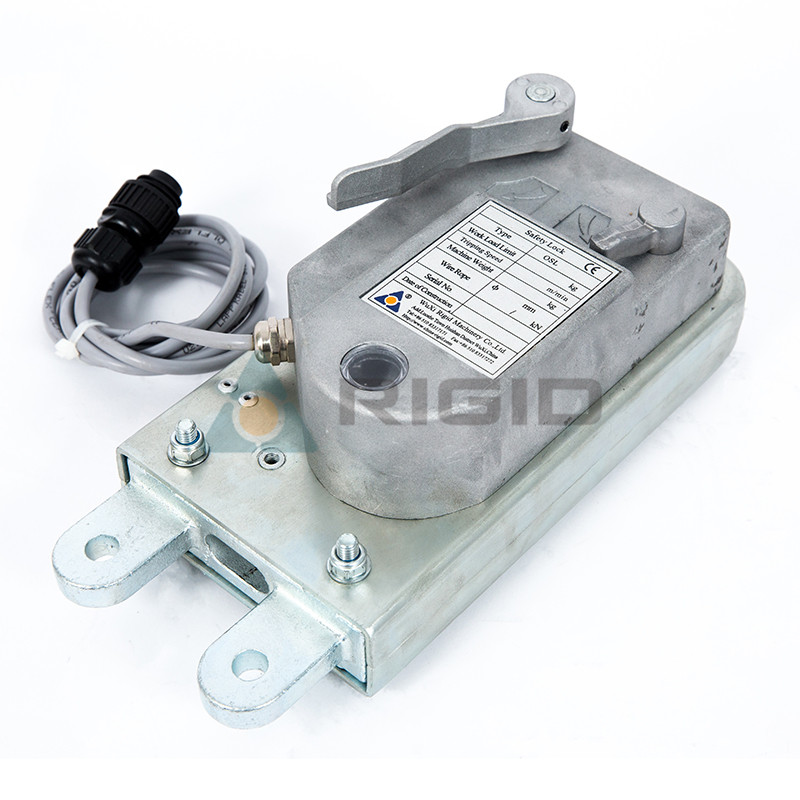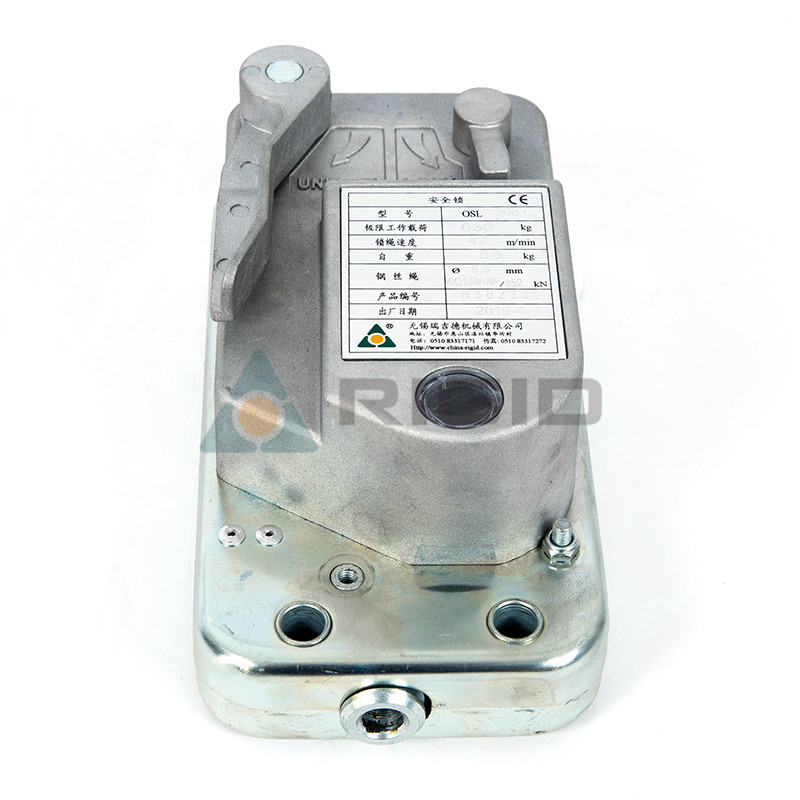 It is equipped with a centrifugal governor and a clamping jaw mechanism. The governor continuously monitors the descending speed of the equipment. When the descending speed of the wire rope exceeds the preset threshold, the centrifugal force triggers the clamping jaw mechanism. The jaw, made of hardened steel, can quickly grip the wire rope within a short distance, thus immediately stopping the equipment from falling and ensuring the safety of operators and the equipment itself.