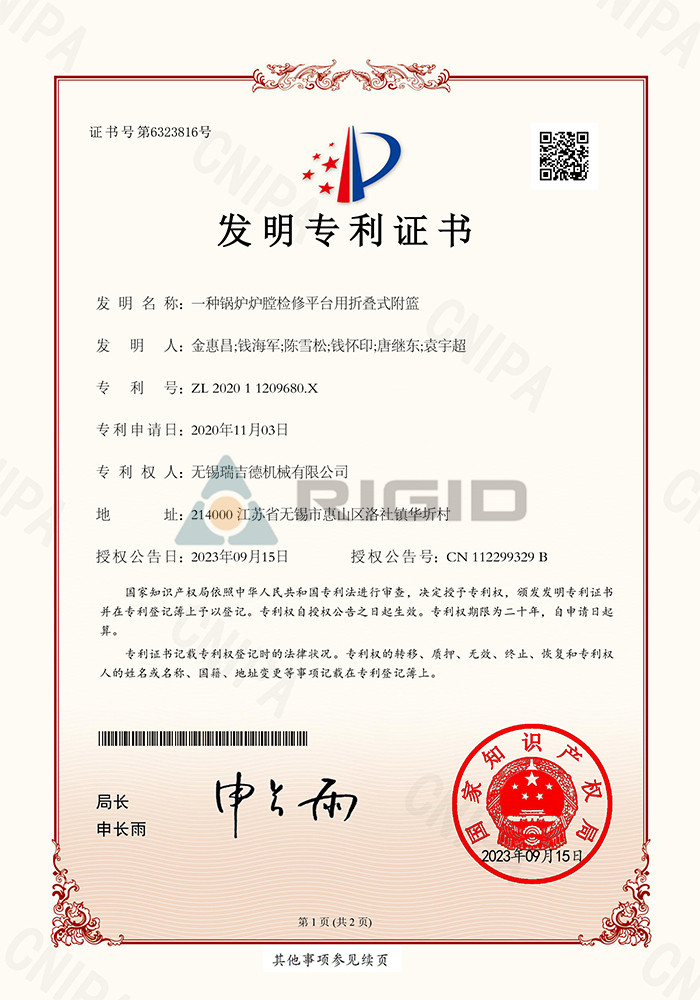 2020 1 1209680. X Folding basket for boiler furnace maintenance platform
