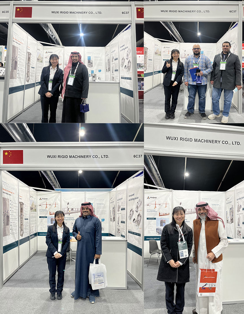 During the exhibition, RIGID focused on the self-developed intelligent high work suspended platform equipment, rope climbing equipment technology, and various types of manned cargo intelligent hoist, attracting professional visitors from Saudi Arabia, the United Arab Emirates, Egypt and other Middle Eastern countries and Europe and the United States to stop and negotiate. The company has shown customers the efficiency and safety of its products in super high-rise buildings, bridge maintenance, wind power installation and other scenarios, and has reached initial cooperation intentions with a number of international engineering contractors.